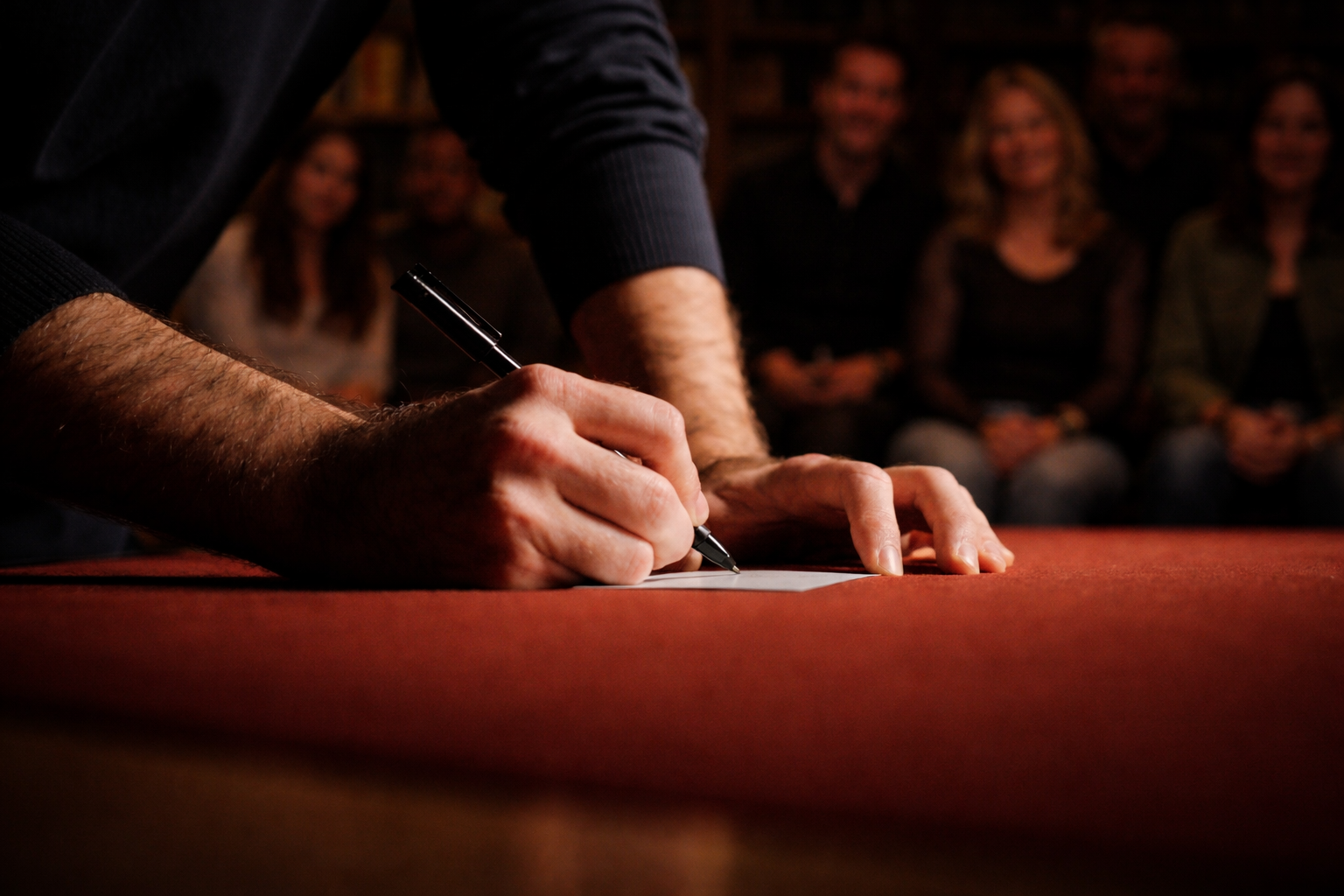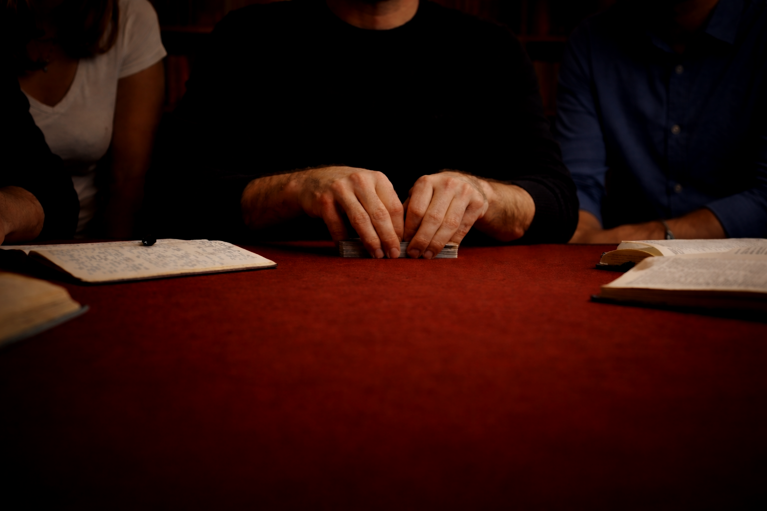 Guests sit just a few feet away from the table where stories unfold through close-up magic, conversation, and moments of shared curiosity.
